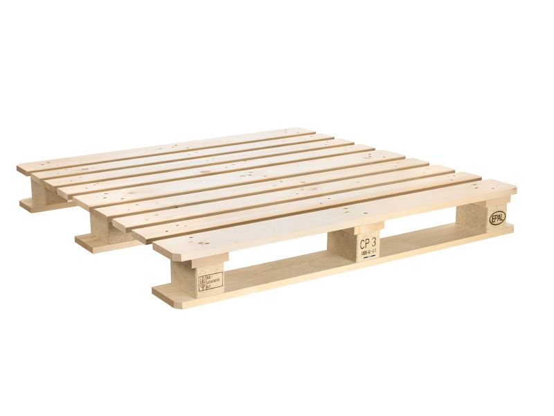 Square chemical pallet according to IPPC/ISPM 15 standard. Length 1,140 mm, width 1,140 mm and height 138 mm. The EPAL CP 2 range has been specially developed for use in the European chemical industry. The EPAL CP 3 pallet is ideal for the transport and storage of all types of chemical goods. The basic structure of the EPAL CP 3 pallet allows for easy transport and stable storage of the goods. Accessibility from 4 sides enables efficient handling of the EPAL CP 3 pallet during the production, storage and transport of goods or merchandise. The EPAL CP 3 pallets are compatible with all common industrial trucks, storage systems and standard load carriers.
